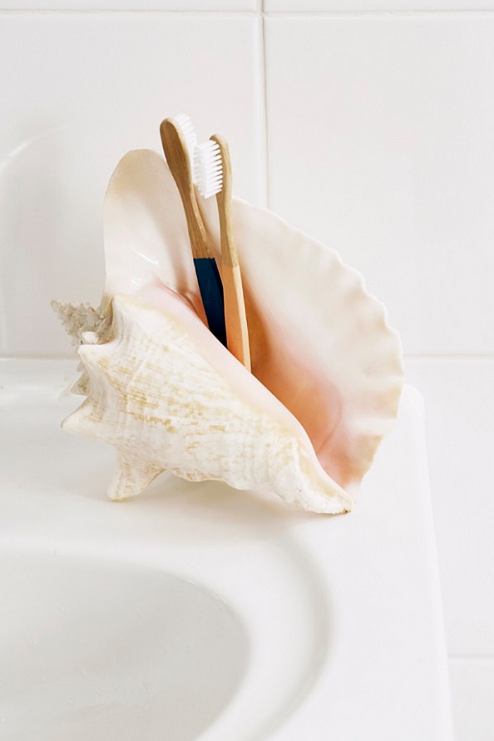 Một chú sò biển lớn có cái miệng rộng sẽ là một vật dụng lưu trữ bàn chải đánh răng của bạn thật hiệu quả. Khi bạn lượm được chúng ở biển về trông chúng sẽ rất tuyệt vời và điều bạn cần làm là tận dụng chúng thành một vật dụng giữ. Điều đó sẽ giúp bạn được ngắm chú sò này vào mỗi sáng đấy.