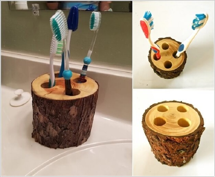 Với chất liệu bằng gỗ này chúng ta có thể biến tấu nó trở thành một vật dụng đựng bàn chải đánh răng hoàn hảo bằng việc khoan các lỗ nhỏ trong thân của nó. Bằng cách này bạn có thể tạo ra một khoảng không gian nhỏ vừa đủ để chứa bàn chải đánh răng rồi.